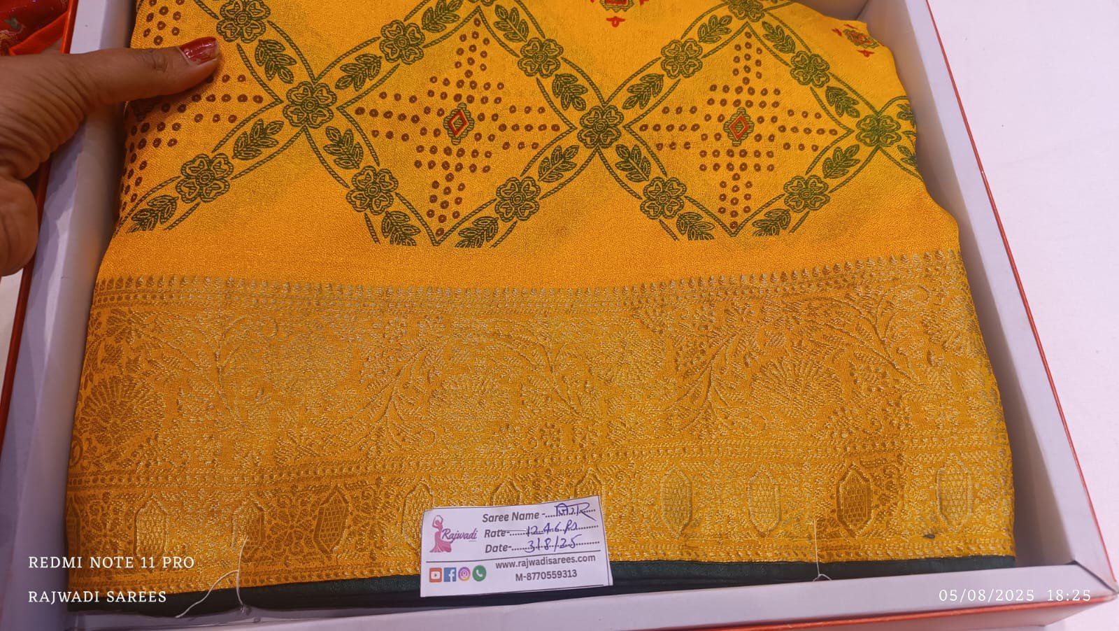 Pila saree with kachcha gota work
