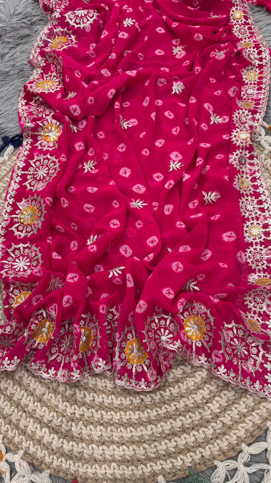Stunning Bhandani saree. Perfect for festive, wedding, Party .