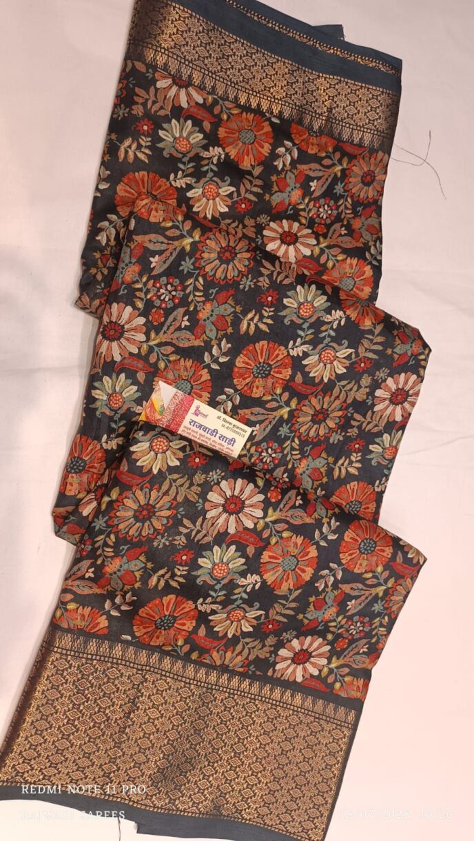 Premium mul cotton saree with katha and mirror work