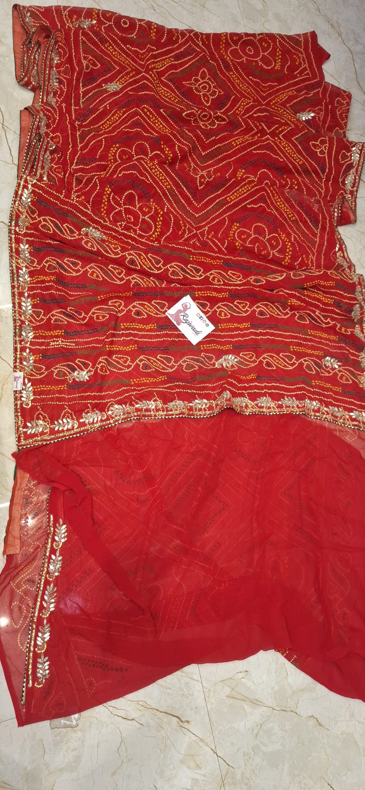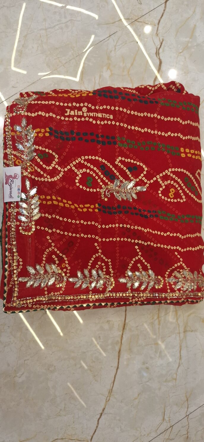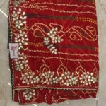Red White Saree with kachcha gota work