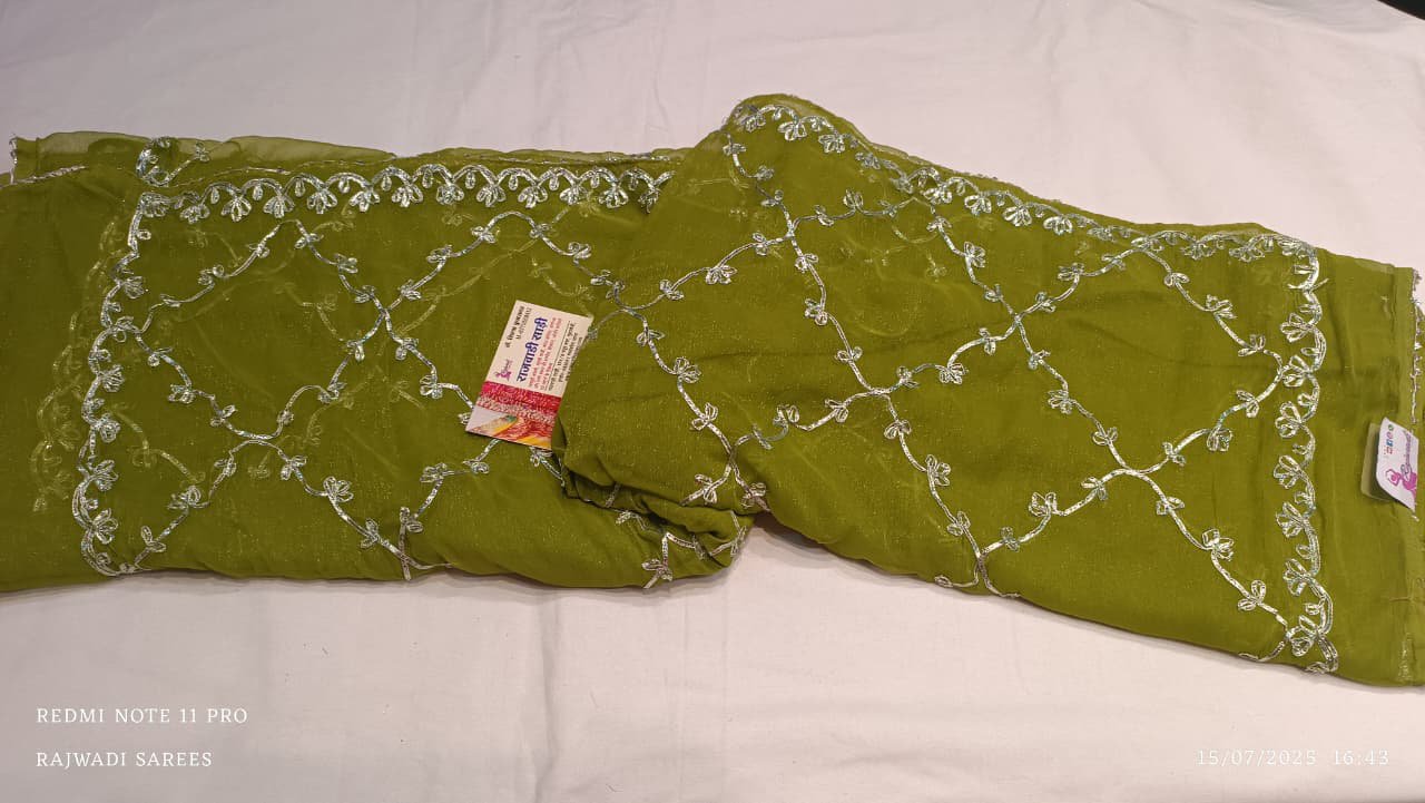 shimmer chiffon silk saree with kachcha gota jaal work on all over saree