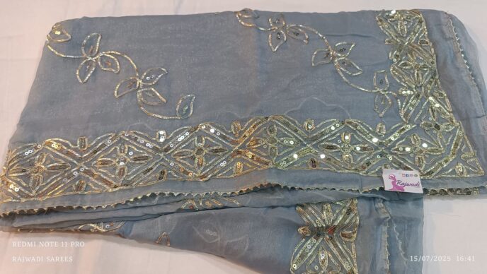 shimmer chiffon silk saree with kachcha gota jaal work on all over saree
