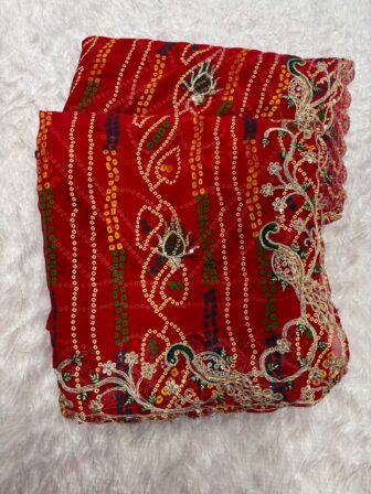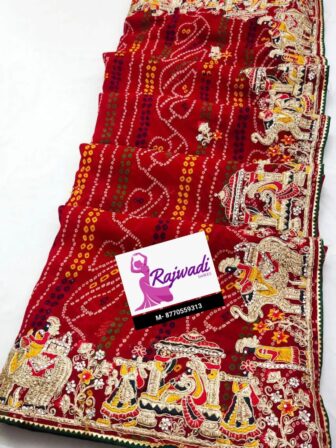 Red bandhej saree