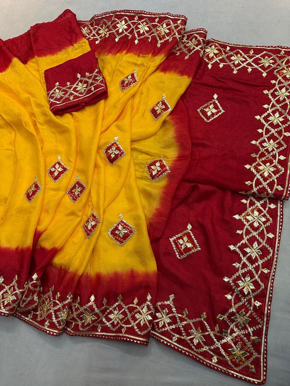 Pila saree with kachcha gota work