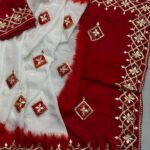 Red White Saree with kachcha gota work