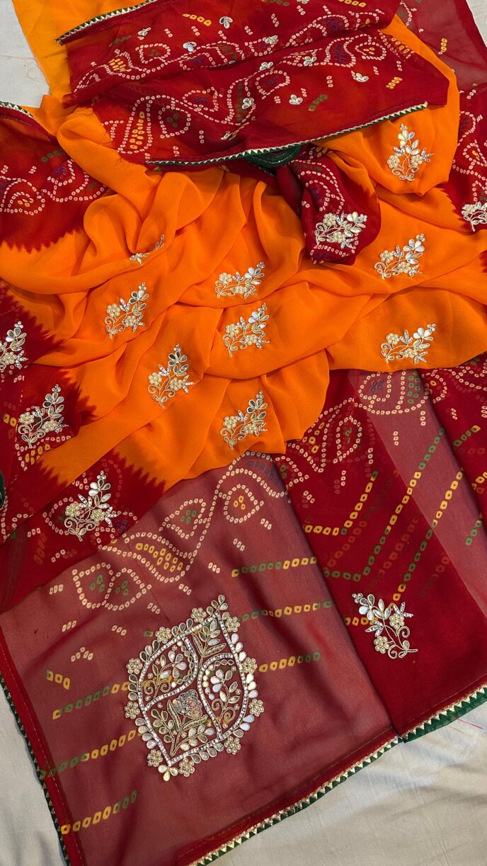 red color bandhej saree