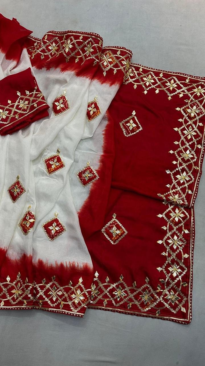 Red White Saree with kachcha gota work